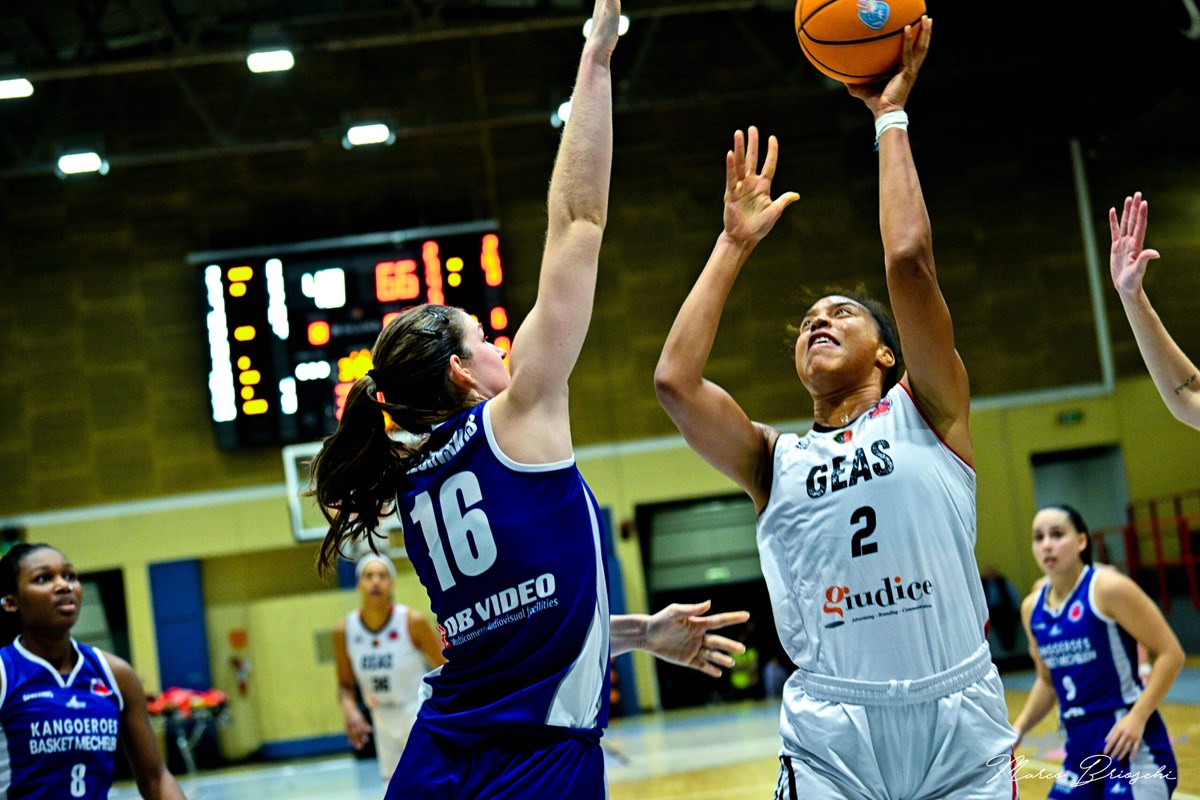 La partita del PalaAllende vide le ospiti vincere 54-72. Dopo un primo tempo equilibrato, le belghe scapparono definitivamente a cavallo tra terzo e quarto periodo, realizzando in meno di 6′ un roboante parziale di 1-14. Deleterio per il GEAS la percentuale dall’arco (4/24 al termine del match) e la lotta a rimbalzo (32-46 a favore di Mechelen).