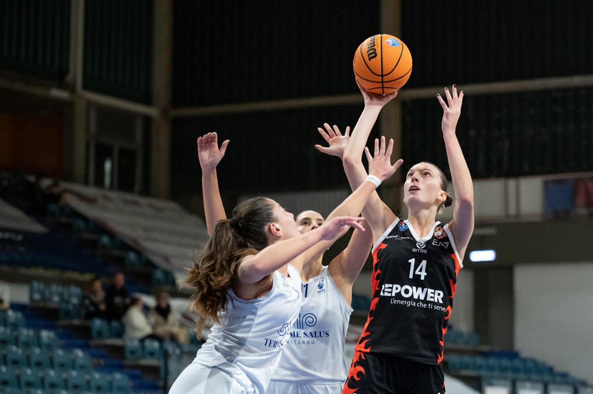 Successo in trasferta per Repower Sanga Milano, 53-64 contro Terme Salus Ants Viterbo. Le padrone di casa tengono il passo per tutto il primo tempo, passando anche in vantaggio prima dell'intervallo con una tripla di Myklebust. Sanga risponde con un parziale di 9-0 in apertura di terzo quarto, poi Marinkovic trova nove punti di fila per allungare fino al +15. Viterbo non riesce a tornare a contatto nel finale, e la squadra di Pinotti si prende momentaneamente il primato in classifica. 19 punti per Marinkovic, bene anche Toffali con 12 punti e Olson con 11. Dall'altra parte in doppia cifra Myklebust con 13 punti e Gionchilie con 12.