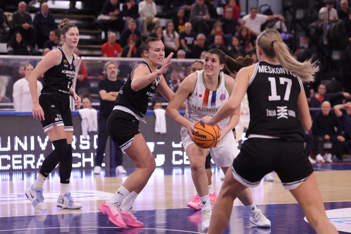 Una tripla di Simon interrompe il parziale iniziale di 6-0, con la Magnolia che fatica a sbloccarsi in attacco. Nel secondo quarto Dean realizza per il +8, poi Morrison risponde con sette punti consecutivi e Makurat realizza la tripla del sorpasso. Nel terzo periodo è Simon a realizzare da tre punti per il +9, tenendo vive le chance di rimonta nonostante l'immediata risposta di Nacickaite. La lituana riporta Kibrikstis a un solo possesso di distanza nell'ultimo quarto, ma un parziale di 12-0 rimette tutto in discussione. Campobasso non riesce ad andare oltre il +12 realizzato ancora da Simon, e nel finale Green respinge definitivamente il tentativo di rimonta. La squadra lituana passa il turno nonostante la sconfitta, decisiva Nacickaite con 20 punti e 6/12 da tre punti. Non bastano 17 punti di Simon, 15 di Morrison e 13 di Makurat.