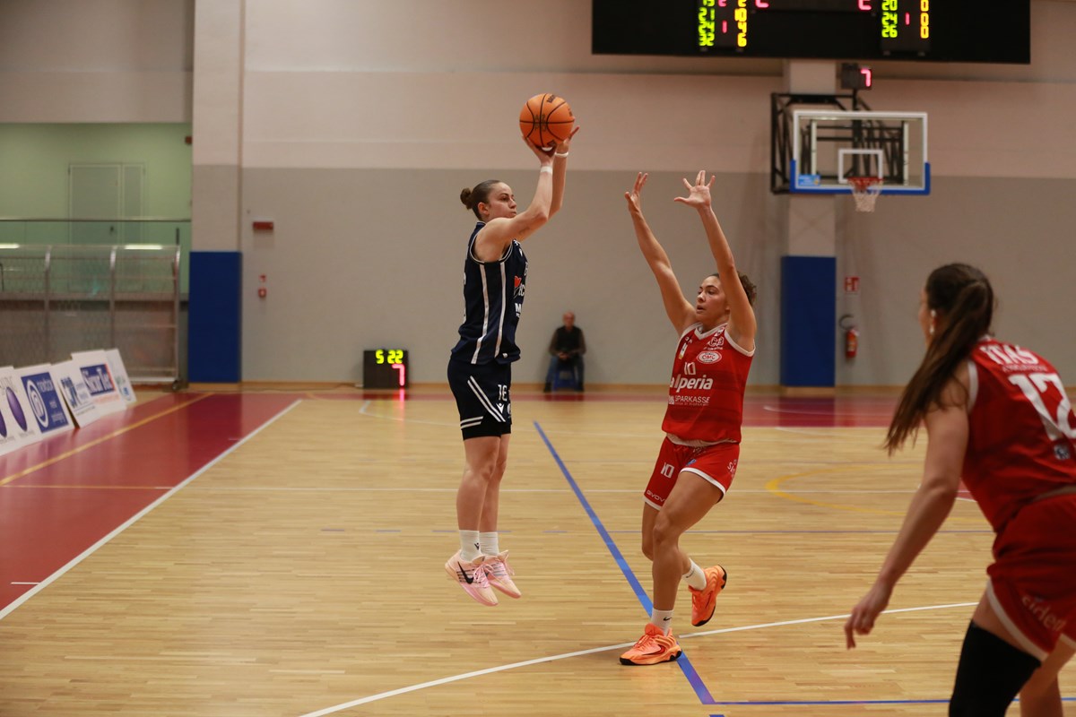 Partita indirizzata dal parziale di 18-2 nella prima metà del primo quarto, anche se le ospiti riescono a rientrare in singola cifra di svantaggio con quattro punti in fila di Koleva. Alpo allunga ulteriormente e definitivamente in un secondo periodo da 27-8, arrivando a +30 con una tripla di Peresson. Nel secondo tempo la squadra di Soave controlla l'ampio vantaggio e ritrova la vittoria e il primo posto momentaneo in classifica, considerando che Matelica riposerà in questo turno. Peresson vicina alla tripla doppia con 12 punti, 11 rimbalzi e 8 assist, Rosignoli top scorer con 19 punti e 14 punti per Rainis. Per Bolzano la migliore è Koleva con 11 punti e 6 rimbalzi.