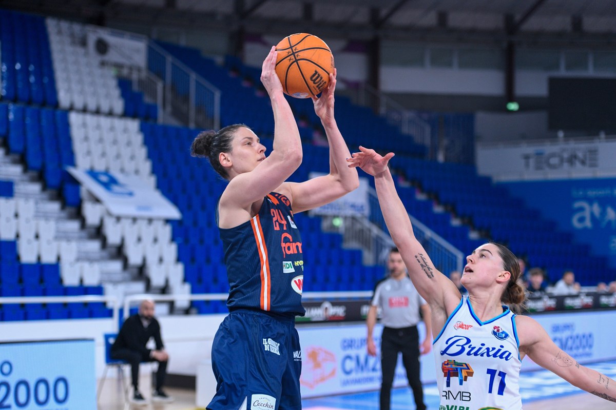 Assente Togliani per le padrone di casa, che hanno un approccio positivo alla gara e vanno avanti con una tripla di Winkowska e i canestri di Tagliamento. Le triple di Zanardi e Laksa valgono il controsorpasso, e dopo il +5 a fine primo quarto Schio inizia a salire di tono, arrivando a in doppia cifra di vantaggio con Shepard. Un secondo parziale di 36-13 porta le campionesse d'Italia a +28 all'intervallo, poi nel terzo periodo Laksa realizza 11 punti e la tripla del 41-88. Nel finale il gap si allarga ulteriormente, e per la squadra di Lapeña arriva la quattordicesima vittoria in quattordici gare disputate. Laksa top scorer con 23 punti e 5/11 da tre punti, 17 in 17 minuti per Shepard, in doppia cifra anche Keys con 16 punti, Zanardi con 11 e Verona con 10. Per Brixia 19 punti di Tagliamento, 11 di Winkowska e 10 di Delboni.