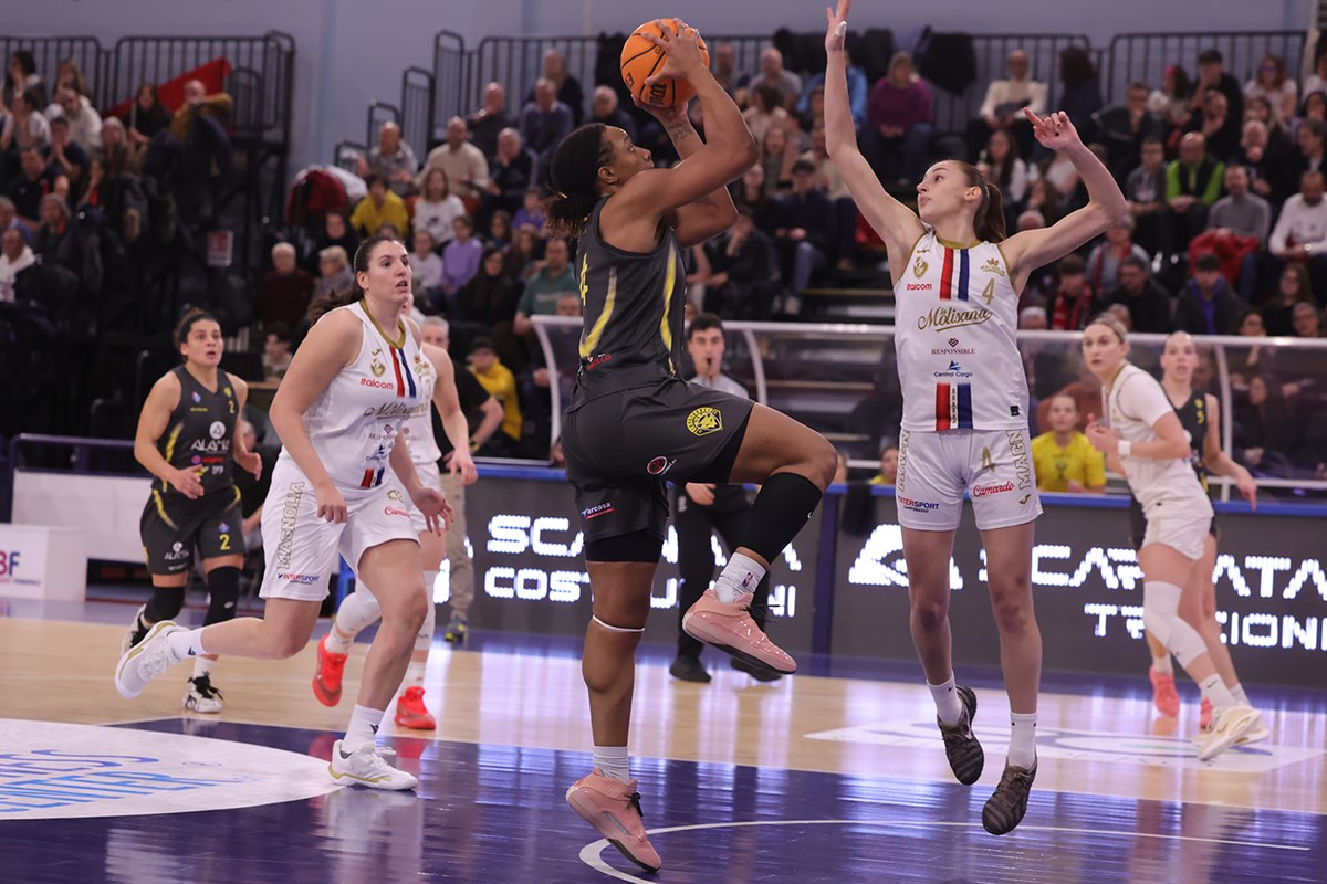 Sfida intensa e combattuta fino all'ultimo al PalaSelvapiana di Campobasso, dove l'Alama ha dato filo da torcere per quanto ha potuto a una delle squadre in lotta per il vertice. Le giallonere erano costrette a rinunciare a Gilli per una botta al ginocchio (out invece Morrison dall'altra parte), ma sono riuscite comunque a dare battaglia per tutti i 40', tenendo anche la testa avanti per diversi minuti. Ancora segnali di crescita dunque per la formazione di coach Piazza, che in classifica resta appaiata a Roseto in ottava posizione.