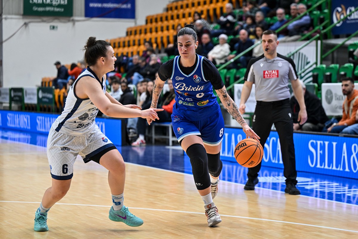 La Dinamo parte bene con un parziale di 7-0, ma le ospiti tornano subito a contatto e sorpassano già nel primo quarto con Kristlova. Punteggio sempre in equilibrio per tutto il primo tempo, chiuso in vantaggio dalle padrone di casa grazie a tre triple di Boros, Poindexter e Trozzola negli ultimi minuti prima dell'intervallo. Brixia inizia meglio il terzo quarto, torna davanti con una tripla di Bongiorno e allunga fino al +10 con un parziale di 27-14. Sassari accusa il colpo, prova a rimanere a galla con i canestri di Treffers ma non riesce mai a ricucire lo strappo. I 23 punti di Tagliamento, i 20 in 19 minuti di Kristlova e i 19 con 9 rimbalzi di Winkowska valgono un successo fondamentale per la squadra di Zanardi, che trova anche 13 punti di Bongiorno e della rientrante Togliani. Non bastano 23 punti di Carangelo, 19 di Poindexter e 14 di Treffers.