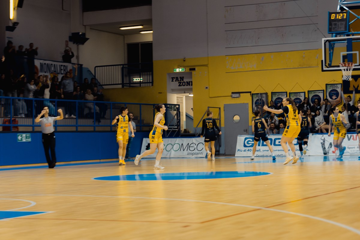 La determinazione di Moncalieri fa la differenza al rientro in campo. Le gialloblù pareggiano subito i conti con la tripla di Pellegrini e a metà periodo scappano nel punteggio con un parziale di 8-0 approfittando di un momento di difficoltà di Torino. Le nero-oro si ritrovano nel finale quarto grazie al rientro in campo di Chukwu che va a segno seguita da Cordola. I due punti di Pasero allo scadere valgono il nuovo sorpasso torinese e a un quarto dalla fine il tabellone recita 46-47. L'ultimo quarto è battaglia vera. Penz e Chukwu vanno subito a segno da due punti e inaugurano un bel momento per Torino che si porta sul +5. Il rientro di Moncalieri decide la sfida: le gialloblù approfittano di un nuovo blackout ospite per tornare avanti con Obaseki e scappare sul 61-55 con la tripla di Pellegrini e i punti di Colli. La tripla di Heriaud del -3 apre un finale punto a punto incandescente, in cui a prevalere, spinte dal calore del Palaeinaudi, sono le ragazze di coach Lanzano: alla sirena è 68-62.