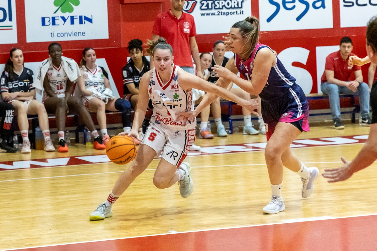 Mantiene il fattore campo anche Repower Sanga Milano, che vince 72-43 contro A.S. Vicenza. Sanga comanda nel punteggio fin dall'inizio, e dopo un primo quarto in equilibrio trova il primo vantaggio in doppia cifra nel secondo con Allievi. Il parziale di 22-9 porta le padrone di casa a +19 e indirizza la partità già all'intervallo, con Vicenza che non riesce mai a rientrare a contatto. Nel finale arriva anche il +32 con Toffali, top scorer della gara con 20 punti. In doppia cifra anche Bestagno con 13 punti, mentre dall'altra parte la migliore è Kantzy con 12 punti e 8 rimbalzi.