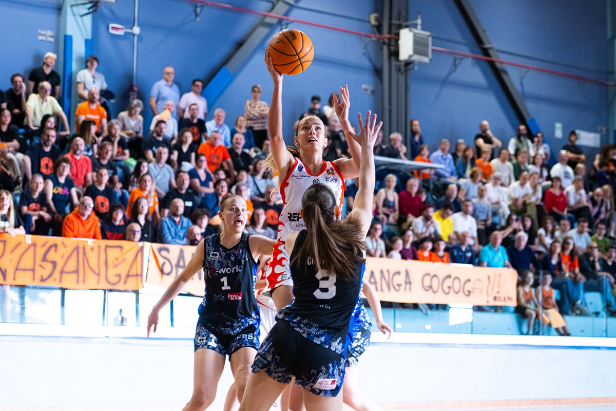 Milano prova a rimescolare le carte con la difesa a zona, ma l’ala finlandese è implacabile e punisce ancora dall'arco per il 31-47. È Olson a interrompere un pesantissimo parziale di 17-0 con un canestro d’orgoglio, ma l’inerzia resta saldamente nelle mani dell’E-Work. In una fase di gioco intensa ma tecnicamente sporca, complice un arbitraggio "all'inglese" che lascia correre molto, le milanesi faticano a trovare continuità.